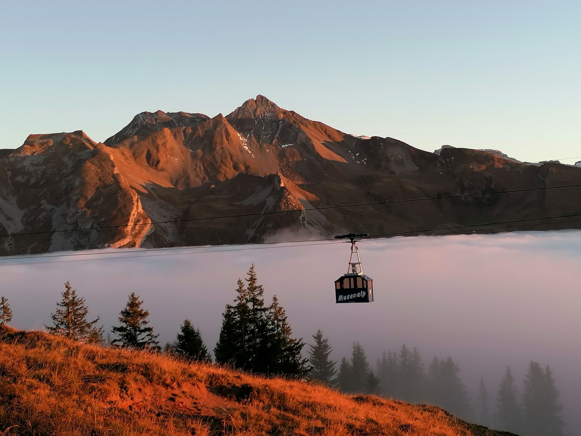 Die Fahrt gehört hier ganz selbstverständlich dazu: Entdecke die Musenalpbahn und erfahre mehr über die kleine Viererkabine, die eindrückliche Strecke und alles Wichtige für deinen Ausflug.