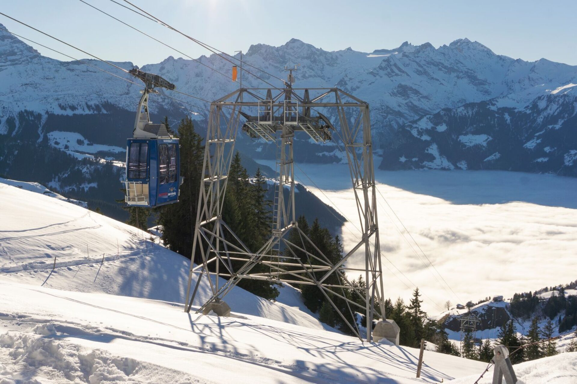 Die Luftseilbahn bringt dich direkt ins Gebiet Biel und Richtung Kinzigpass. Von hier führen Wanderwege weiter ins Muotathal, Richtung Klausenpass und in die umliegende Berglandschaft.