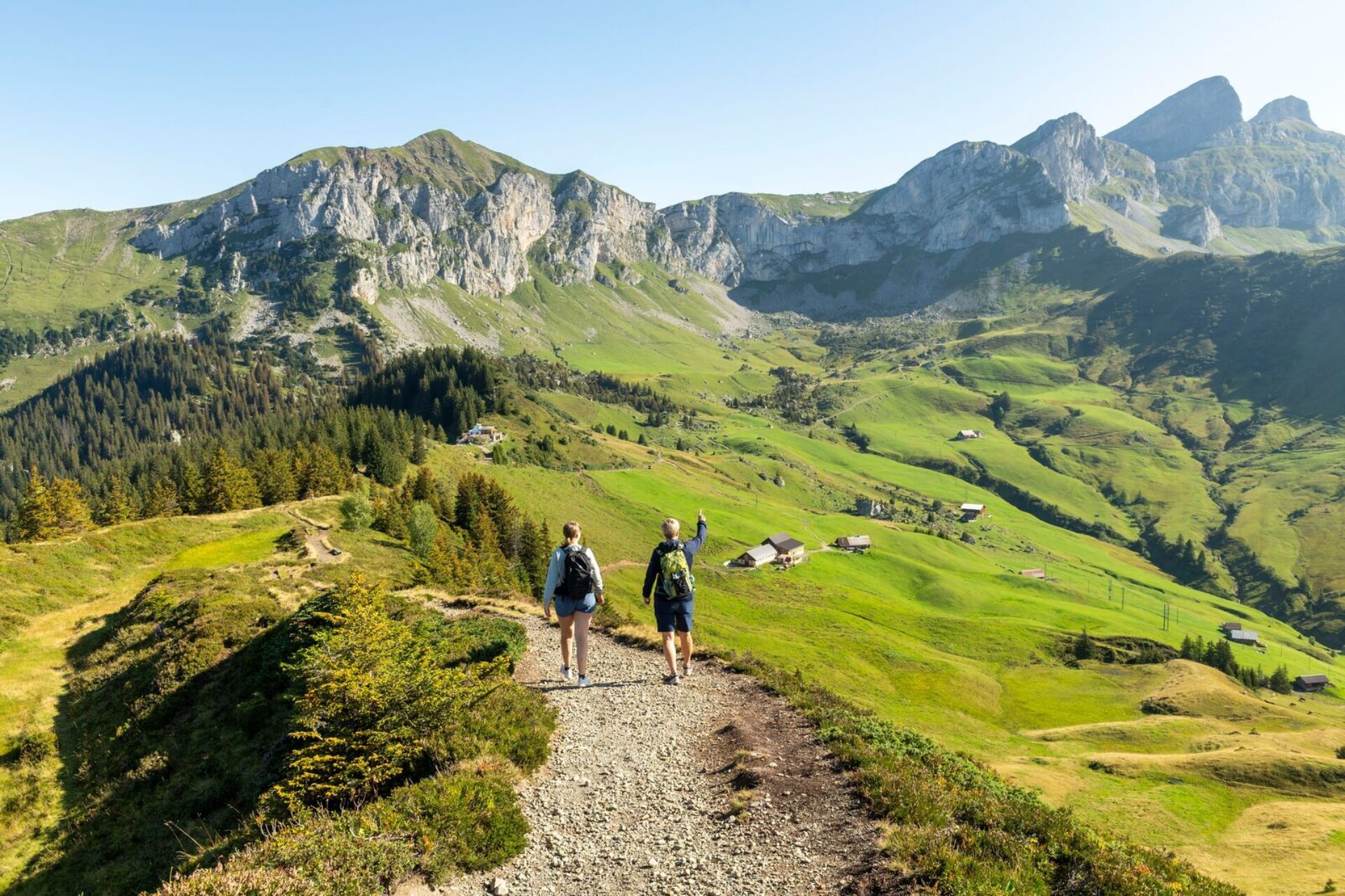 Ob zu Fuss oder mit dem Bike – die Wege führen durch offene Landschaft und entlang des Höhenwegs mit schönen Ausblicken ins Schächental und die Urner Alpen.
