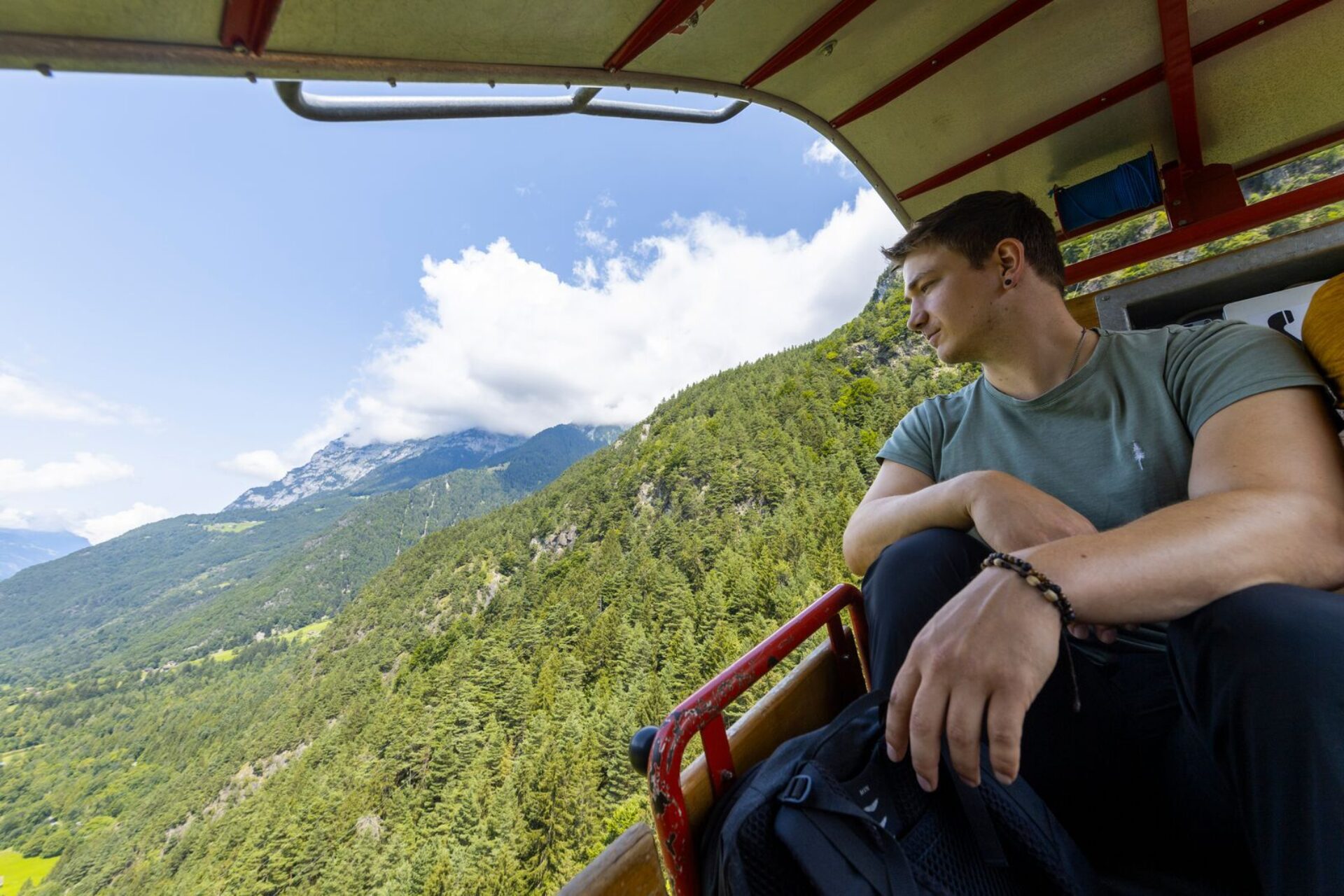 Der Seilwart lebt seit seiner Kindheit auf den Chilcherbergen. Die Bahn gehört hier zum Alltag und ist bis heute die wichtigste Verbindung zwischen Tal, Höfen und Alpen. Diese enge Verbindung zur Berglandwirtschaft prägt den besonderen Charakter des Gebiets.