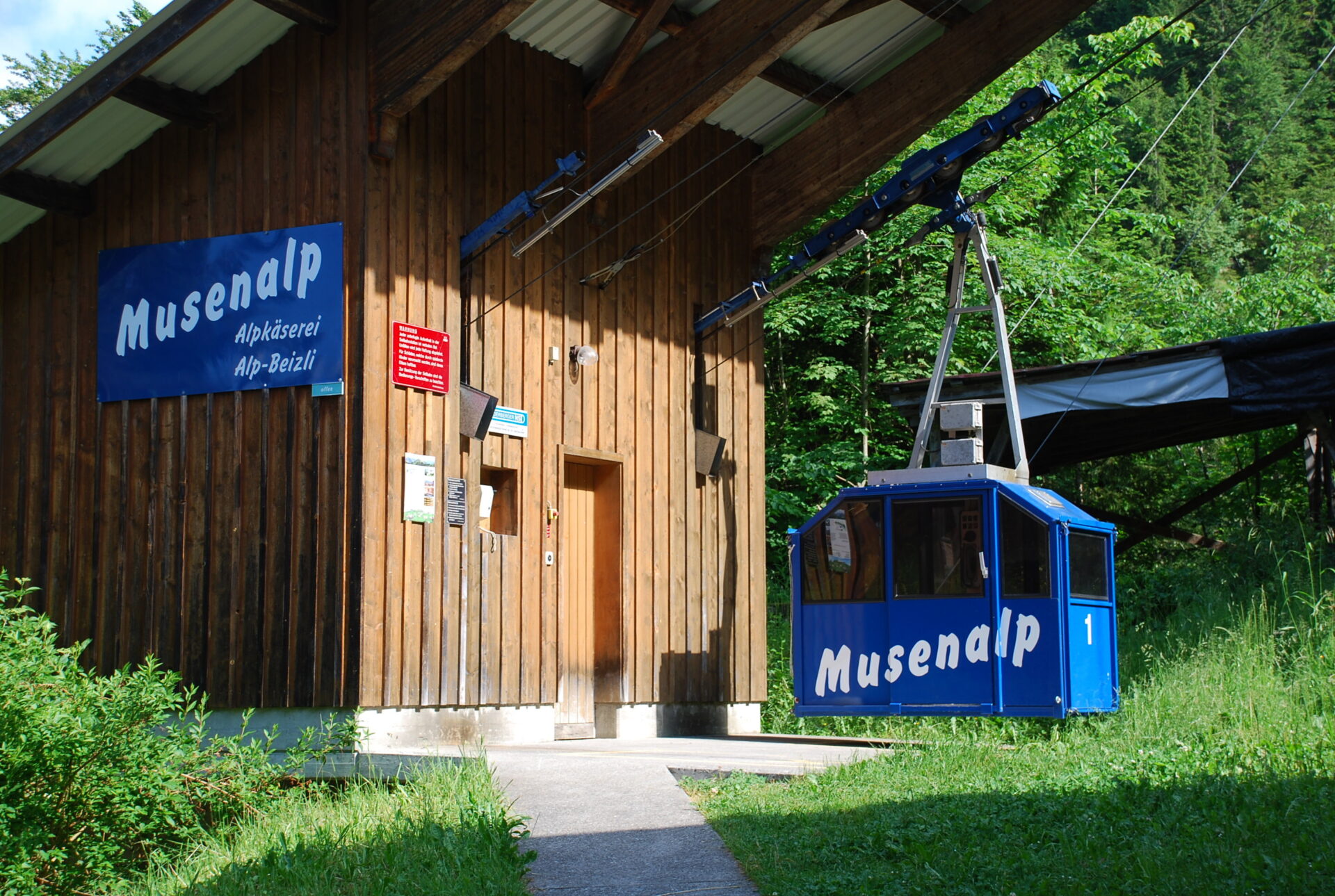Die Talstation der Musenalpbahn befindet sich direkt neben der Bergstation der Luftseilbahn und ist bequem zu Fuss erreichbar.