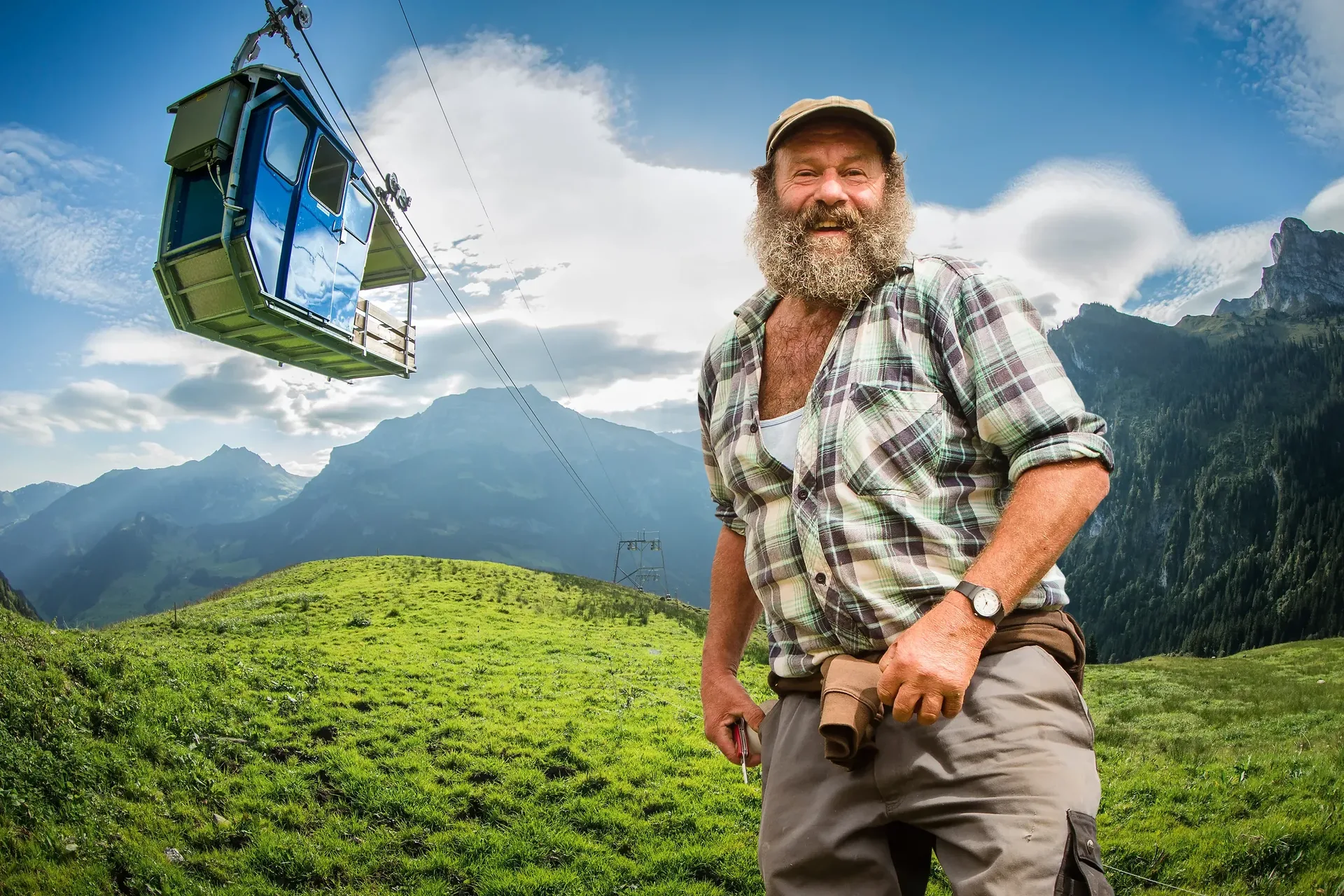 Die Luftseilbahn bringt dich von Wolfenschiessen aufs Brändlen – ein Hochplateau am Fuss des Haldigrats. Oben wartet kein Ausflugs-Rummel, sondern Bergalltag: der Bio-Betrieb der Familie Schmitter, Tiere rund ums Haus und diese stille, weite Aussicht ins Engelbergertal.